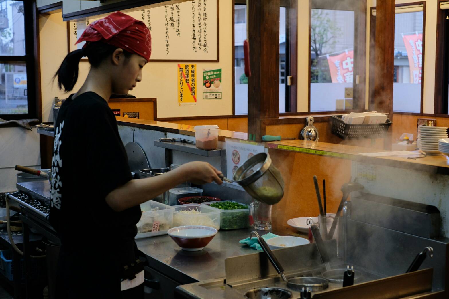 ラーメン練習中の中井さんは宇津さんの紹介でスタッフになってくれました。