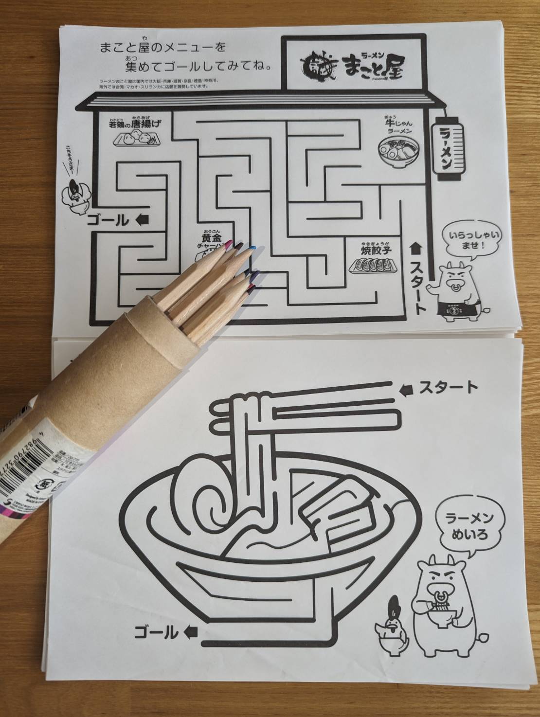 各テーブルに塗り絵セットが有ります。