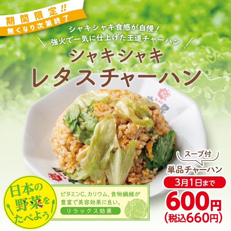 今回 期間限定商品の「レタスチャーハン」はいかがでしょうか⁉️